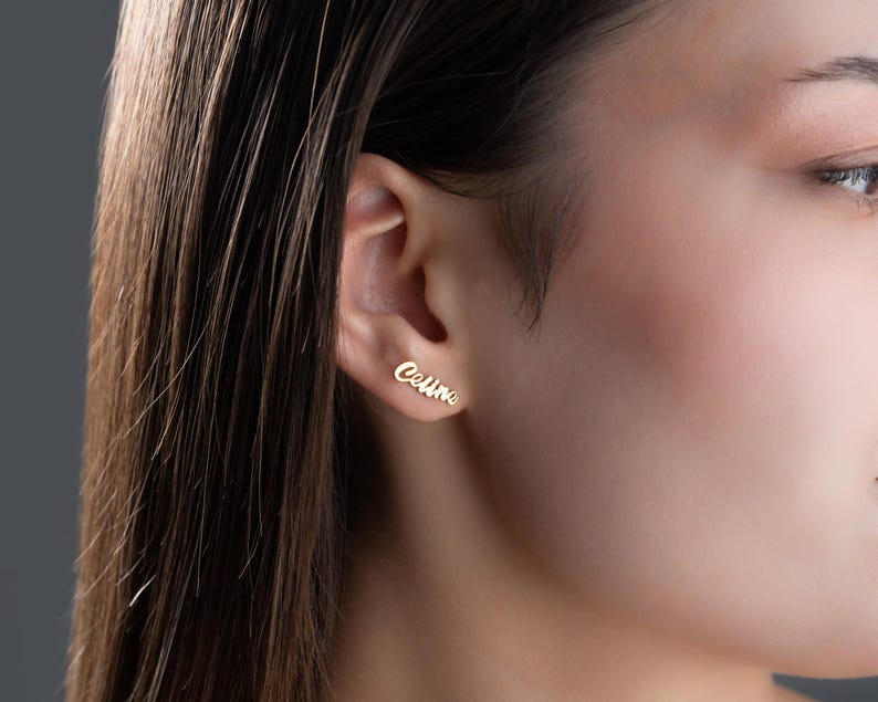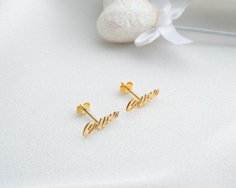 These Custom Name Earrings are crafted with a sleek and stylish design, featuring your personalized name in a beautiful script font. Whether it’s your own name or someone special’s — this accessory becomes a truly unique keepsake.